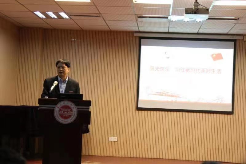 邱银富以新冠肺炎疫情之下的思考与反思为切入点,围绕深刻领会党的十九届五中全会精神、努力创造新时代美好生活进行详细阐述。他指出,党的十九届五中全会鲜明提出了发展的“主题主线”和“两个根本”:以推动高质量发展为主题,以深化供给侧结构性改革为主线,以改革创新为根本动力,以满足人民日益增长的美好生活需要为根本目的。他结合自身学习、工作体会勉励在场师生,要坚持以习近平新时代中国特色社会主义思想为指导,把握中国特色社会主义进入新时代的历史机遇,弘扬伟大抗疫精神,把个人梦融入到中华民族伟大复兴的中国梦之中,将个人命运与国家和民族命运紧密相连,树立为幸福而奋斗、在奋斗中谋幸福的“奋斗幸福观”,辛勤耕耘、砥砺前行,脚踏实地、艰苦奋斗。他希望全体教师要践行习近平总书记提出的“四有”好老师标准,不忘立德树人初心,牢记为党育人、为国育才使命做党和人民满意的教师;青年学生要认真践行习近平总书记提出的爱国、励志、求真、力行的要求,加强思想淬炼、政治历练、实践锻炼和专业训练,在奋斗的青春中练就过硬本领,争做有理想有本领有担当的新时代青年,用自己的奋斗与坚持,努力创造新时代美好生活。