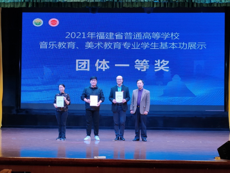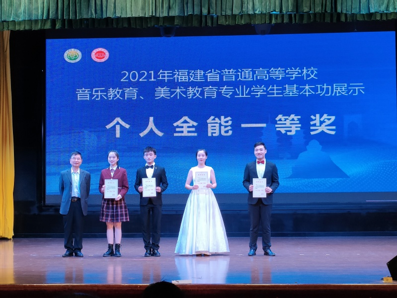 本次音乐教育专业基本功展示包括教学能力和“微课”展示两个部分。来自全省11所本科院校、3所专科学校的学生分别从歌唱与钢琴伴奏、自弹自唱、合唱指挥、中外乐器演奏、舞蹈、“微课”等六个方面展示音乐教学能力。经过2天激烈角逐,我校与福建师范大学均获得2021年全省普通高等学校音乐教育专业学生基本功展示本科组团体一等奖,福建幼儿师范高等专科学校获专科组一等奖,我校2018级学生陈聪睿、刘军涛、夏文强获本科组个人全能一等奖,福建幼儿师范高等专科学校学生卓颖获专科组个人全能一等奖。