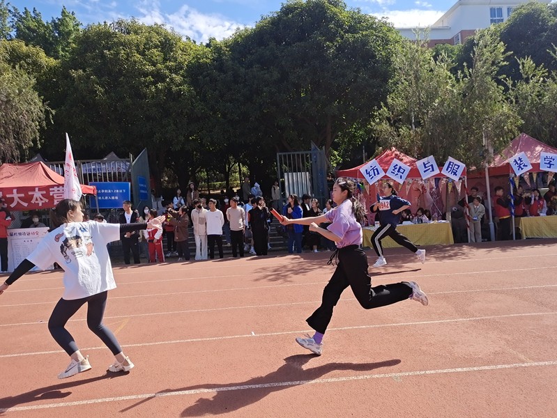 本届运动会上,我院运动员在比赛中勇于挑战、顽强拼搏,表现出良好的精神面貌。其中,音舞女子接力代表队荣获学生甲组女子4x100米第七名、李慧珊荣获学生甲组女子跳高第一名、王雨晴荣获学生甲组女子三级跳远第五名、郑乐桐荣获学生甲组女子实心球投远第五名、聂妤潆荣获学生甲组女子跳远第八名及学生甲组女子实心球投远第六名、李祖阳荣获教工甲组男子800米第五名。