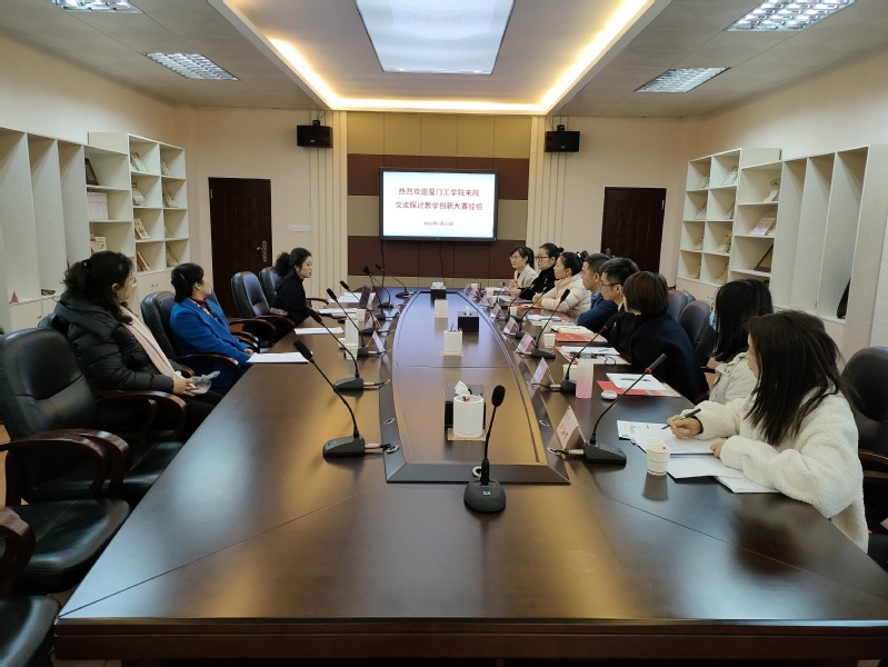 1月12日,厦门工学院教师进修学院院长应志勇、教务处处长白继博一行赴音乐与舞蹈学院交流,院长王丹丹、副院长陈恩慧会见来宾,双方就高校教师教学创新大赛等相关事宜进行较为全面深入的交流探讨。学院办公室、学工办等相关部门负责人出席交流座谈会。