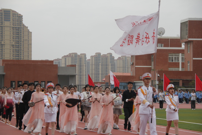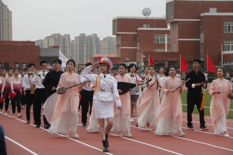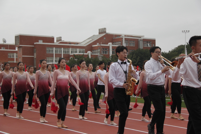 排头的领队手举院旗,踏着漂亮的正步,带领行进队的音舞学子们走向主席台下。南音专业的学子们款款走来,手持南音上四管乐器与下四管小乐器,展现南音的特色风采;音乐学专业的学子们为运动会献出《歌唱祖国》,展现了音乐学专业的良好素养及对祖国与学校的热爱;舞蹈学专业的学子们,迈着轻盈的步伐,为校运动会献出靓丽的舞蹈。随着一句句口号的呐喊,行进队的学子们踏着整齐的步伐,完成了收尾。