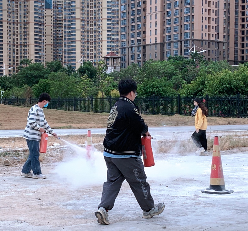 演练过程中,辅导员李祖阳详细地介绍了灭火器的相关知识,同时也为在场学生示范如何正确使用灭火器。随后,同学们在保卫处工作人员的指导下亲身实践灭火。