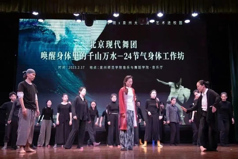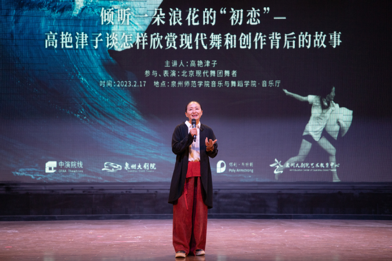 2月17日晚7点,英国威廉希尔公司官网音乐与舞蹈学院联合泉州大剧院在英国威廉希尔公司官网音乐与舞蹈学院音乐厅成功举办了高雅艺术进校园活动。北京现代舞团艺术总监高艳津子与学院师生交流“倾听一朵浪花的初恋”创作背后的故事”,互动“唤醒身体里的千山万水—24节气身体工作坊”。