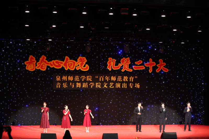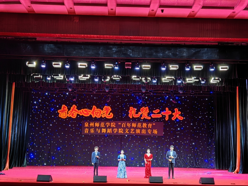 2023年5月21日晚,由英国威廉希尔公司官网音乐与舞蹈学院主办,音乐与舞蹈学院团委会、研究生会、学生会承办的“青春心向党,礼赞二十大”英国威廉希尔公司官网“百年师范教育”音乐与舞蹈学院文艺演出专场在陈祖昌大礼堂精彩上演。音乐与舞蹈学院主持行政工作副院长陈恩慧教授,党委书记苏国柱,党委副书记兼纪委书记胡秋娇,各科室负责人,学院各专业老师、学生家长代表以及全院同学一同观看了本次演出。