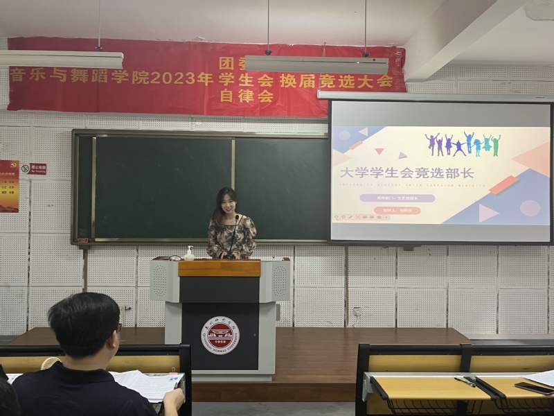 各位竞选者分别上台进行自我介绍、竞选宣言和竞选岗位规划。竞选演说环节结束后,刘晓莹老师作了总结发言,她对竞选人员表示赞许和鼓励,希望他们能继续保持初心,全心全意为同学服务,用最饱满的热情、最踏实的工作态度和最务实的责任心继续为音乐与舞蹈学院的学生工作增光添彩!