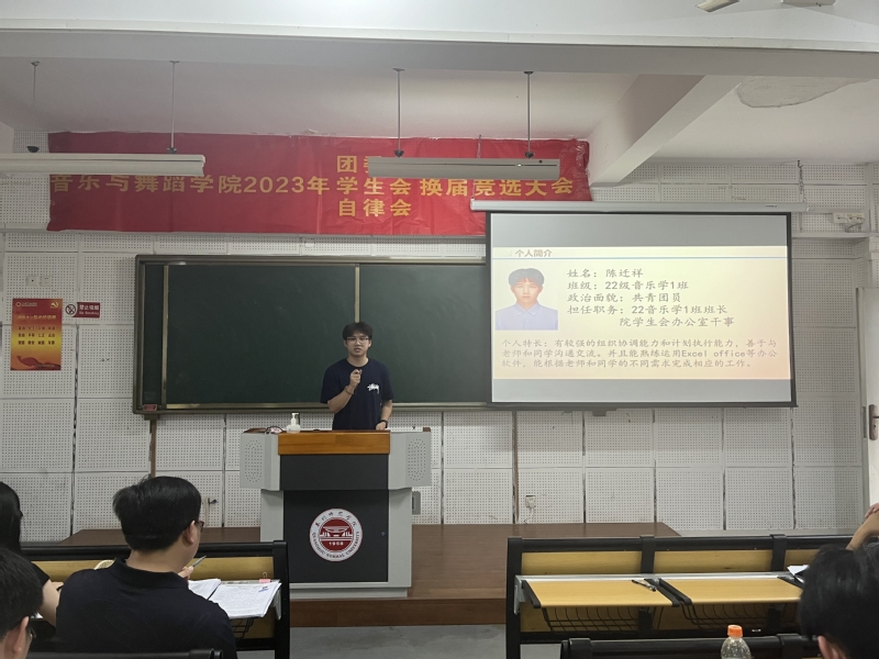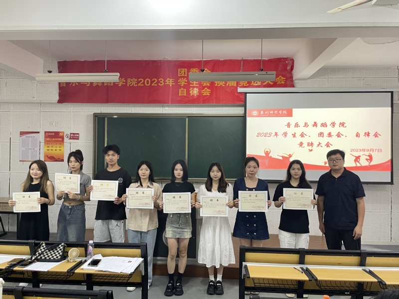 9月7日下午,音乐与舞蹈学院在艺术楼E101教室举行2023年团委会、学生会、自律会学生干部换届竞选大会。学院学工办主任、团委书记刘晓莹,学工办副主任、团委副书记张甲玉,辅导员李祖阳,以及学院团委会、学生会、自律会学生主干,各班级主干参加本次大会。