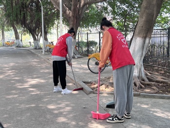“志愿劳动,清洁校园。”学院青年志愿者协会组织志愿者开展陈祖昌大礼堂和学院周边卫生清洁打扫。