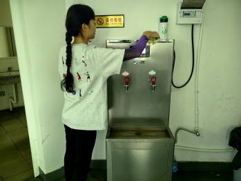 “清洗饮水机,服务你我他。”学院青协志愿者清洗教学楼饮水机,保障饮水机卫生,为同学们提供安全健康的饮用水。