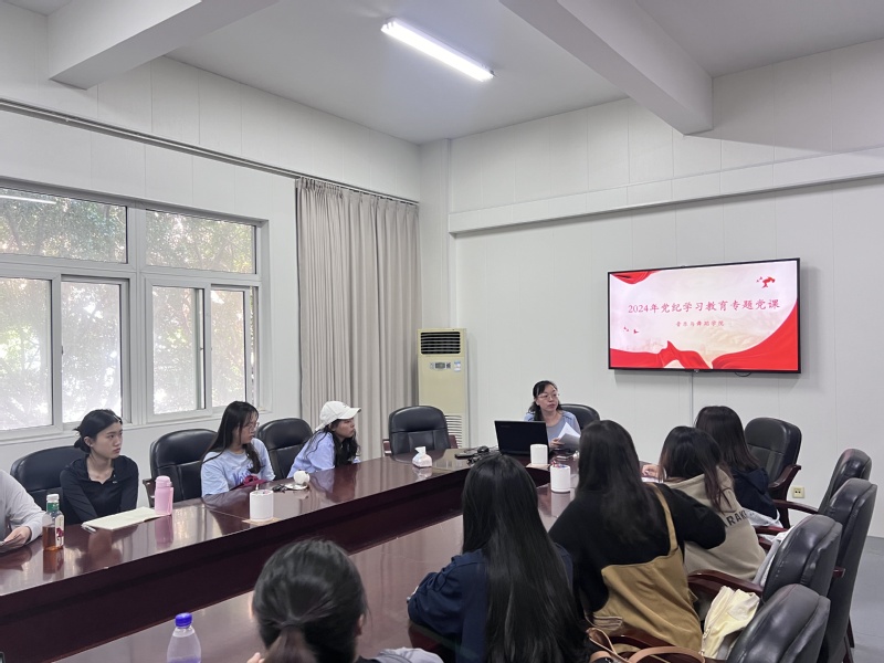 胡秋娇带领大家重温了党的纪律建设历程,讲述了《中国共产党纪律处分条例》修订的背景、过程和重大意义,重点讲解了《中国共产党纪律处分条例》修订的主要内容。她结合典型案例,阐述党员能干什么、不能干什么,引导大家要学纪、知纪、明纪、守纪,做到知敬畏、存戒惧、守底线,扣好人生第一粒扣子。她希望大家以本次党纪学习教育为契机,进一步强化纪律意识,加强自我约束、提高免疫能力,坚定不移听党话、跟党走,努力成为有理想、敢担当、能吃苦、肯奋斗的新时代青年,共同为推进强国建设、中国式现代化贡献青春力量。