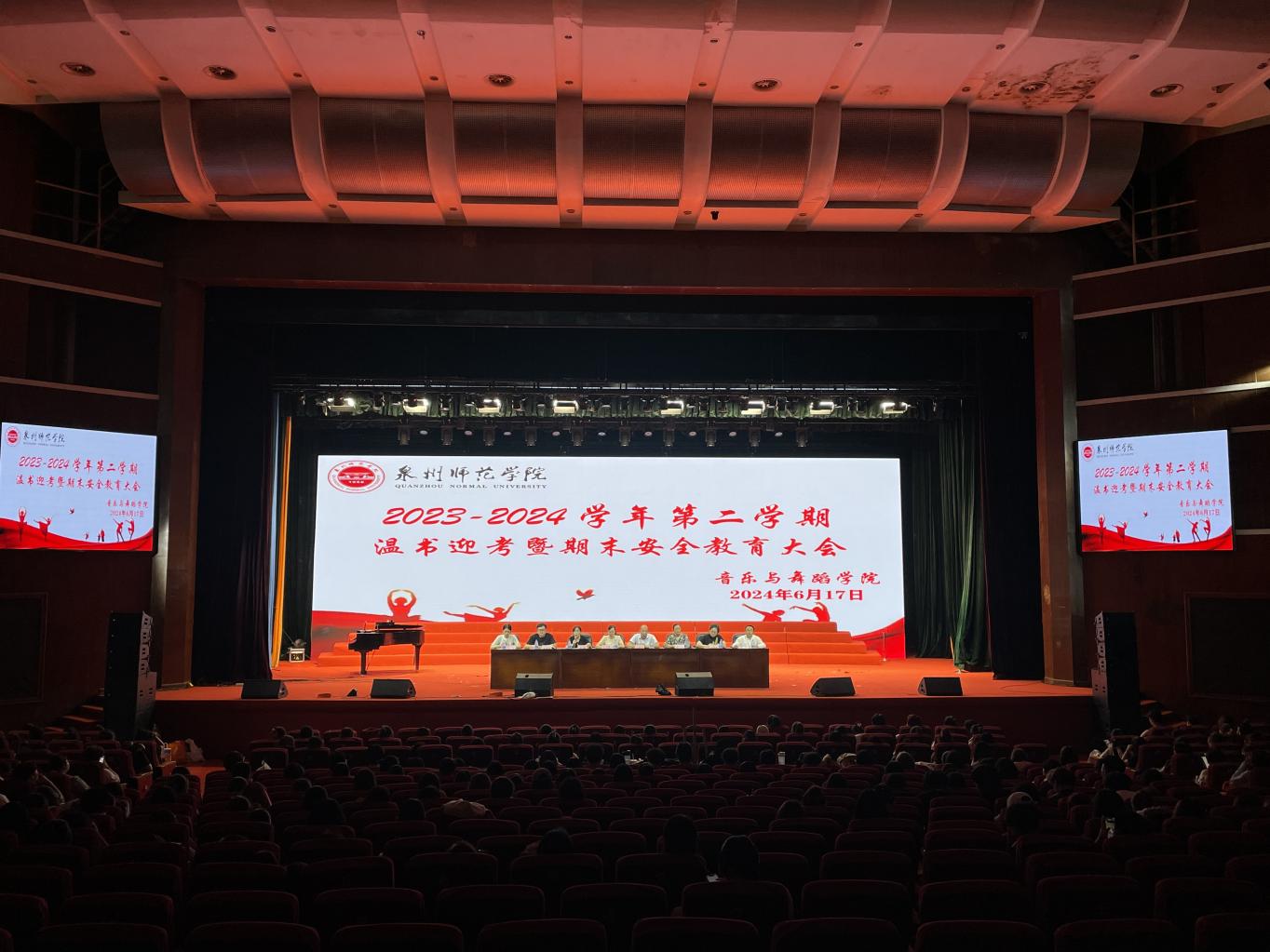 6月17日,音乐与舞蹈学院在陈祖昌大礼堂召开2023-2024学年第二学期温书迎考暨安全教育大会。党委书记苏国柱,党委副书记兼纪委书记胡秋娇,副院长吴少静,教务科科长封辉,学工办主任刘晓莹,学工办副主任张甲玉,辅导员赖鸿、吴亦伦以及全院非毕业班本科生、研究生参加此次会议。会议由胡秋娇主持。