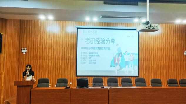 会议伊始,张丽娟先向同学们分享了自己的学习经历,并从笔试备考和面试经验两部分展开讲述考编备考的技巧。她强调同学们应了解自我,选择自己喜爱的专业方向。