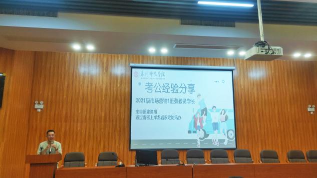 会议第四项,蔡毅贤结合自身经历,分享了备考公务员考试期间自己如何平衡学习和生活,合理安排备考时间,以及如何获取有效信息和学习资料,提升自己的综合素质和竞争力。