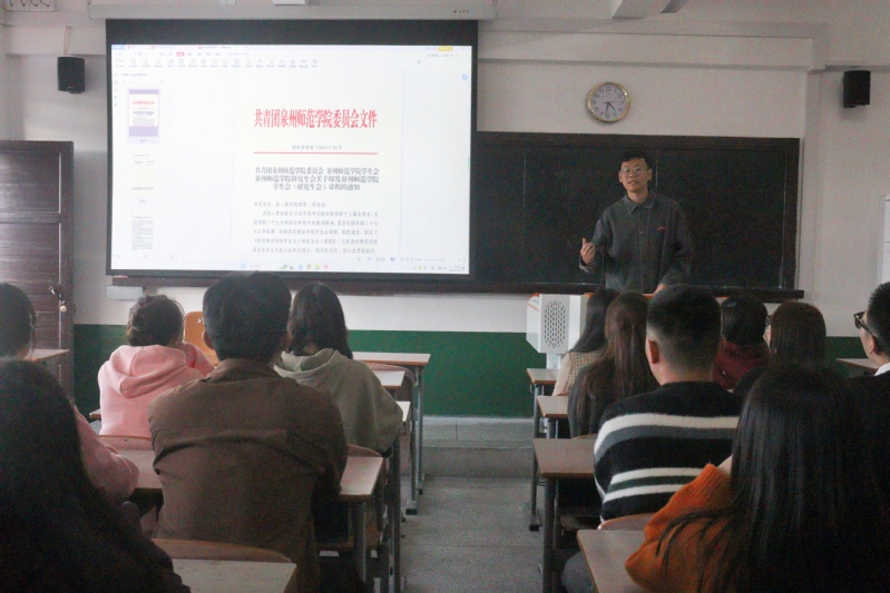 随后,为进一步做好新时代两委会工作,建设一支胸怀崇高理想、恪守学生本分、牢记服务宗旨的学生组织队伍,洪承隆老师向学生骨干讲解《英国威廉希尔公司官网学生会(研究生会)章程》《关于推动高校学生会(研究生会)深化改革的若干意见》《关于巩固高校学生会(研究生会)改革成果的若干措施》,要求两委会骨干成员要加强规章制度学习,着力深化学生会改革,推动学生会工作向善向好发展,并希望校学生会的工作人员要认真对待每一次活动工作,各司其职,全心全意为同学服务。