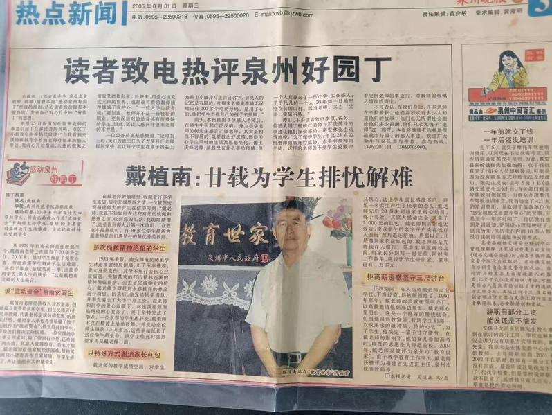 戴植南,男,原南安师范学校教师。1977年毕业于原泉州师专政教专业,拥有29年教龄和50年党龄。