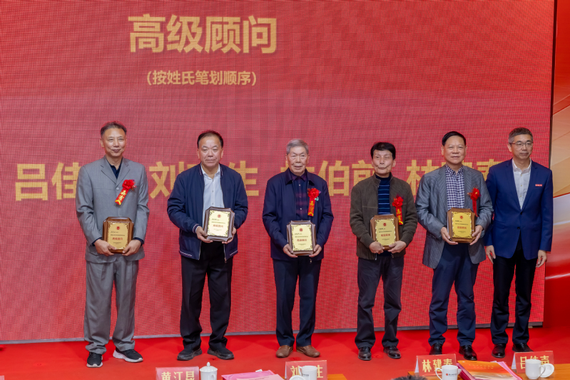 黄江昆向万建明、吕佳声、刘育生、林伯前、林建春高级顾问颁发聘书