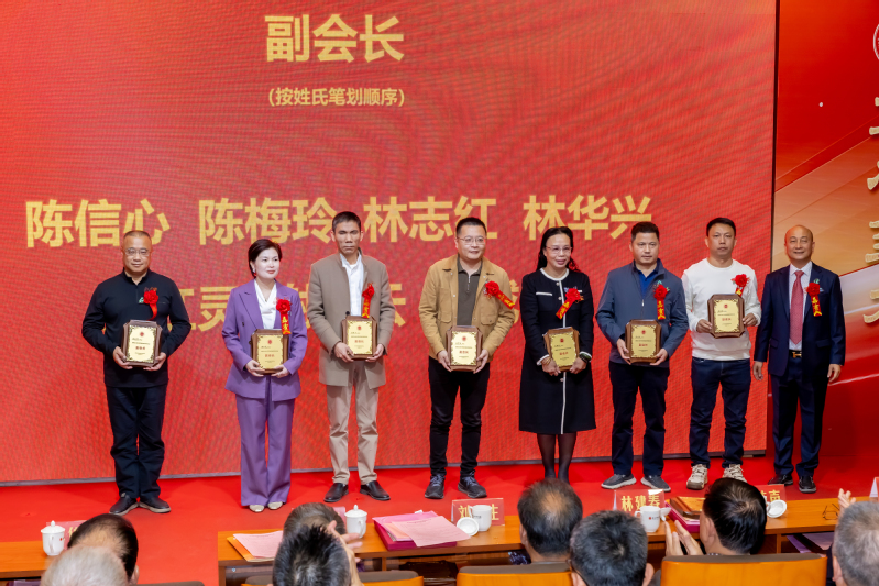 叶少鸣向陈信心、陈梅玲、林志红、林华兴、黄红灵、谢桂云、廖成链副会长颁发聘书
