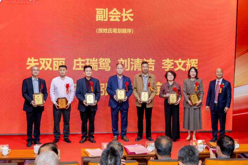 叶少鸣向朱双丽、庄瑞鸳、刘清洁、李文辉、余跃明、张炳、陈宝健副会长颁发聘书
