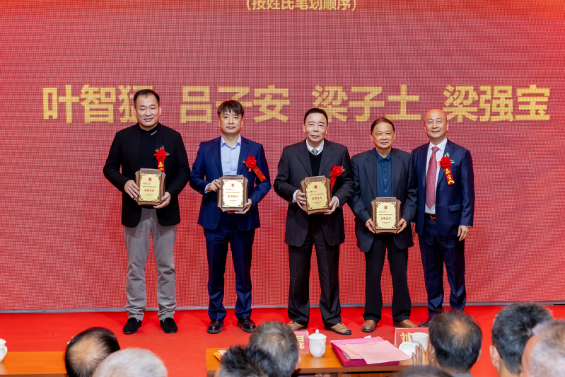 叶少鸣向叶智猛、吕子安、梁子土、梁强宝名誉会长颁发聘书