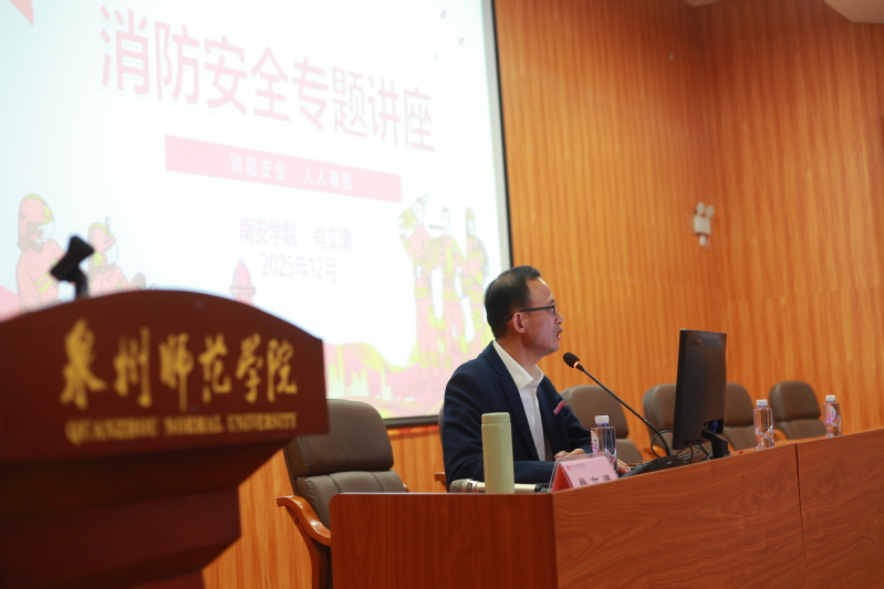 12月18日,南安学院举办消防、交通及实验室安全专题讲座。南安学院党委副书记(主持工作)肖文清、南安学院副院长陈丽娥,2025级全体学生、学生校卫总队全体队员参加活动。