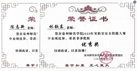 11月13日,组织师生参加学校实验室安全技能大赛,荣获非涉化类教师组优秀奖2项、学生组优秀奖2项。12月18日,举办“南安学院2025年实验室安全知识竞赛”,评选个人一等奖3名、二等奖4名、三等奖7名及班级优秀组织奖3个。12月初,在办公楼一楼大厅,以展板的形式展示实验室安全管理制度、实验室安全基础知识、实验安全事故案例警示、安全事故应急处理预案等内容,为师生普及实验室安全知识。并组织学生参加全校实验室安全海报设计大赛,荣获一等奖1项、三等奖4项、优秀奖3项,学院荣获优秀组织奖。