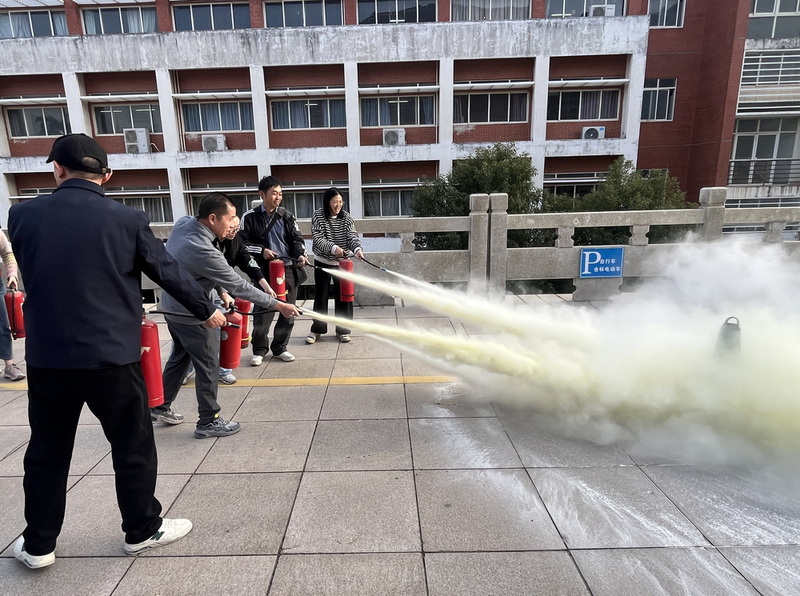 在随后的应急演练环节,洪国祥示范并详细讲解初起火灾扑救要领及灭火器等消防器材的正确使用方法,参训人员逐一动手操作,模拟扑灭初期火情,切实提升了火灾应对与应急处置能力。