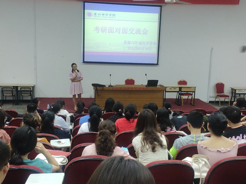 2019年5月16日,资环学院在中山一楼学术报告厅举办了考研经验交流会。会议邀请五位已被研究生录取的2019届毕业生分享考研经验,专业主任、教学科研办老师以及学院140多位同学参加了本次交流会。