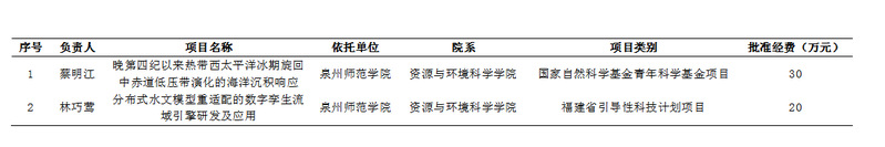近日,2024年国家自然科学基金项目及福建省引导性科技计划项目评审结果公布,我院蔡明江和林巧莺两位老师分别获批国家自然科学基金青年基金项目、福建省引导性科技计划项目,获批总经费50万元。