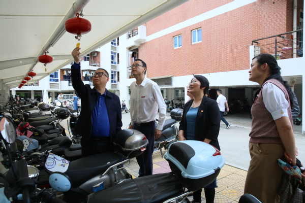 检查组深入学生宿舍、新华都超市、浅水湾大学生创新创业园、配电室、监控中心等人员密集场所及重点部位进行全面细致的安全检查。在学生宿舍区,屈广清认真检查了电动车停放、充电桩消防安全、安全通道、灭火器材等情况,并与学生亲切交谈,了解学生学习生活情况,提醒学生要养成良好的安全习惯,严格遵守学生宿舍各项安全规定,不使用大功率电器、不在宿舍里抽烟、不私拉私接电源插座等,从自身做起,努力成为维护校园安全的标兵。