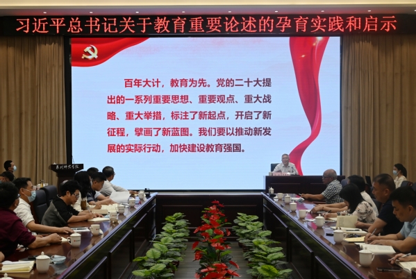 陈明森在主持中指出,要结合主题教育,认真学习贯彻党的二十大精神和习近平总书记教育重要论述,准确把握“国之大者”对教育工作的要求,坚持党对教育事业的全面领导,坚持社会主义办学方向,落实立德树人根本任务,强化履职担当、勇于守正创新,确保党的教育方针政策落到实处,用实际行动为办好人民满意教育作出新的贡献。