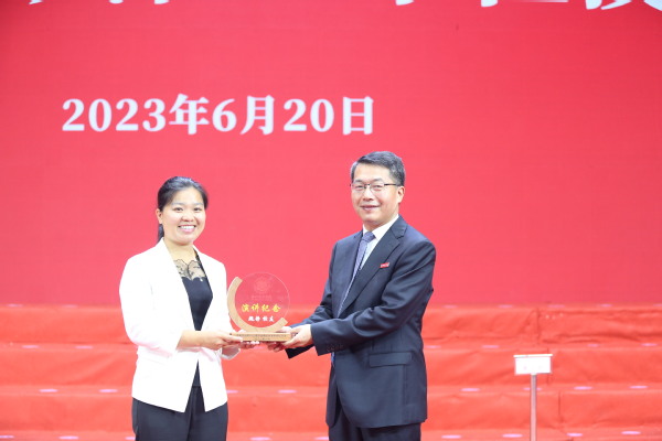 柯瑞清为校友代表魏静颁发演讲纪念牌,黄江昆宣读了《关于表彰2023届优秀毕业生的通知》《关于授予 2023 届毕业生学位的决定》,校领导和嘉宾为优秀毕业生代表颁发荣誉证书。