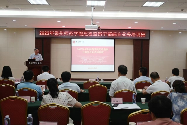 7月6日上午,校纪委(监察专员办)在行政楼101会议室举办2023年学校纪检监察干部综合业务培训班专题讲座及结业式。校党委常委、纪委书记、监察专员陈明森出席并讲话,校纪委常委、纪委综合室负责人主持。