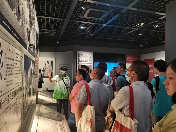 参训教师跟随讲解员赴中共一大会址学习,集体参观了“伟大的开端——中国共产党创建历史”陈列展。展厅由序厅、“前仆后继、救亡图存”“民众觉醒、主义抉择”“早期组织、星火初燃”“开天辟地、日出东方”“砥砺前行、光辉历程”及尾厅组成。陈列内容紧扣“初心使命”,并以此贯穿始终,综合运用多种展示手段全面系统展示中国共产党的诞生历程。