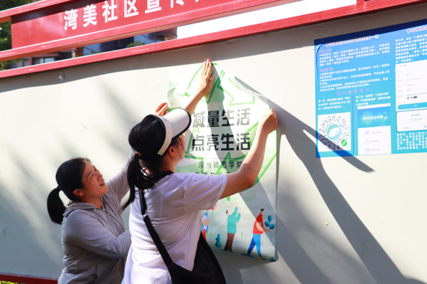 以主题宣讲为特色,扩大理论普及力度。为切实呼吁广大群众自发参与环保、助力乡村振兴,队员们分别前往德化县潘祠村、安溪县湾美社区等地开展主题宣讲3场,并向来往居民群众分发宣传单,在宣传栏上张贴宣传海报,普及绿色生态、乡村振兴的相关知识,引导广大居民自觉维护环境卫生,争做文明的宣传者、实践者、维护者、服务者。
