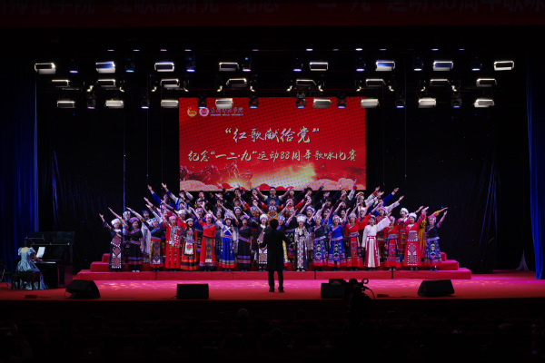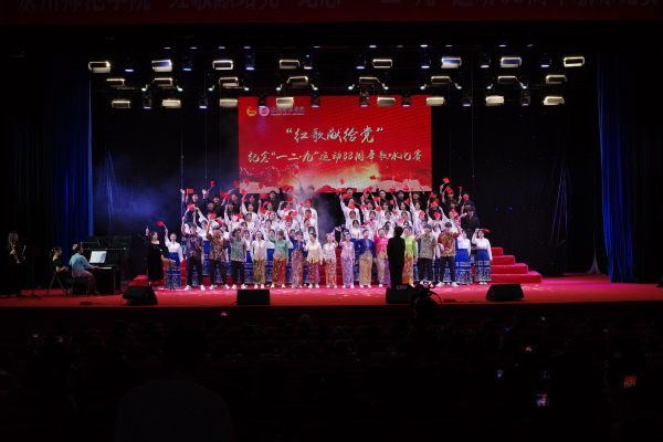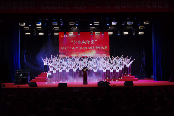 12月7日下午,我校举行“红歌献给党”纪念“一二·九”运动88周年歌咏比赛。校领导柯瑞清、陈晓风、陈明森,相关职能部门负责人,各二级学院党委(党总支)书记、副书记、团委负责人,师生代表近1300人参加活动。