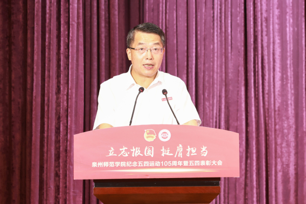 5月9日下午,我校“立志报国,挺膺担当”纪念五四运动105周年暨五四表彰大会在特教第一学术报告厅举行。校领导柯瑞清、林伟、陈晓风,黄江昆、陈明森出席活动。学指会全体成员,各学院(系)党委(党总支)负责人,各二级学院团委负责人以及青年师生代表共300余人参加大会。