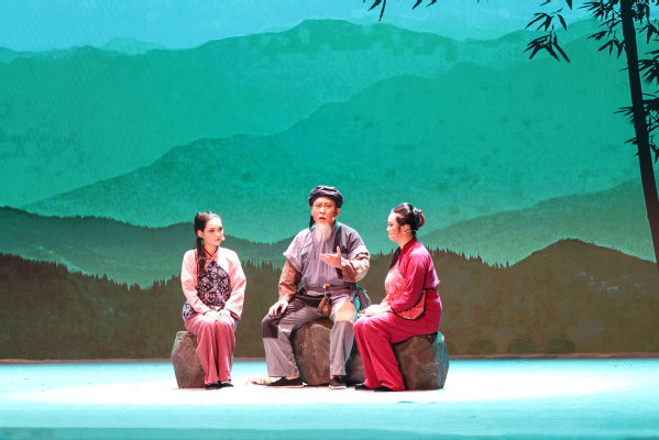 “你看那天边有颗闪亮的星星,关山飞越,一路撒下光明,咱们就跟着它的脚步走啊,走过了黑暗是黎明……”演出现场,音乐与舞蹈学院的师生们通过精彩的表演,生动展现了《党的女儿》中角色的鲜活形象,悠扬婉转的歌声唱出对党和国家的无限热爱,再现了共产党人不屈不挠、视死如归的崇高气节。跌宕起伏的剧情、优美动听的音乐、配合默契的灯光舞美以及演员们声情并茂的演出,赢得了现场观众的阵阵掌声,尤其是田玉梅、桂英、七叔公等人面对叛徒意志坚定、神情肃穆,以及不怕牺牲、视死如归的家国情怀,让观众备受感染,仿佛置身于那个激荡着理想和信仰的革命年代。