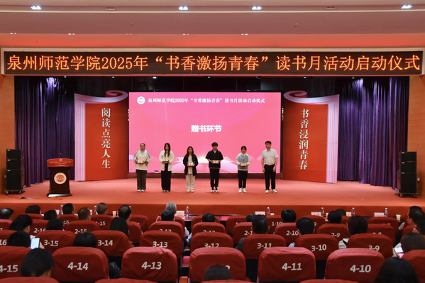 4月24日下午,我校在特教大楼第一学术报告厅举行“书香激扬青春”读书月活动启动仪式。校党委副书记陈晓风,福建新华发行(集团)泉州分公司负责人连普坚,以及有关部门、各二级学院(系)党委(党总支)副书记、分团委负责人和学生代表350 余人,齐聚一堂,共同开启书香之旅。